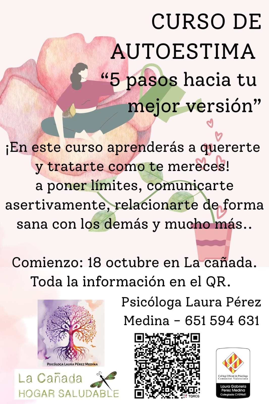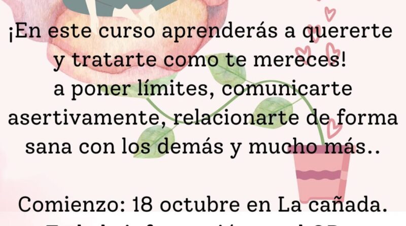 El próximo 18 de octubre dará comienzo en La Cañada el curso de autoestima “5 pasos hacia tu mejor versión”, una iniciativa dirigida a todas aquellas personas que deseen mejorar su bienestar emocional, fortalecer su autoconfianza y aprender herramientas prácticas para relacionarse de forma más sana con los demás.