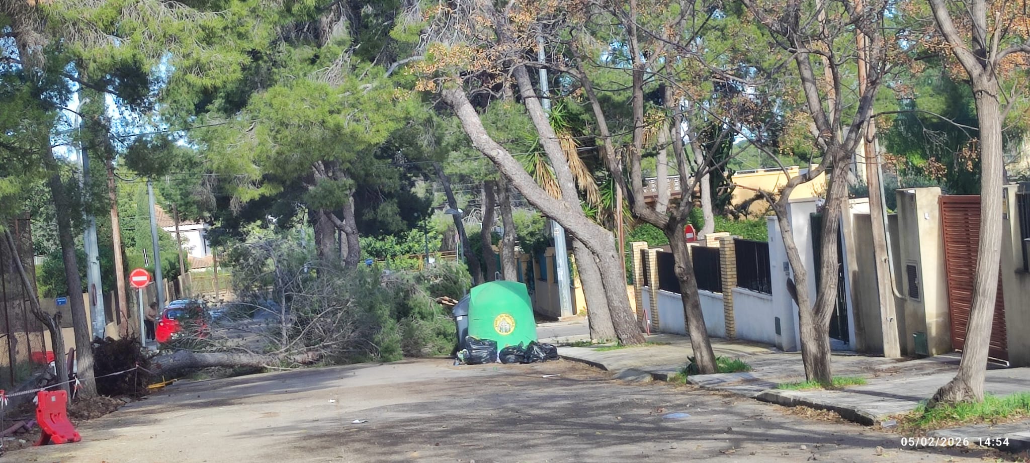 Las fuertes rachas de viento registradas en las últimas horas han provocado la caída de pinos y grandes ramas en La Canyada y en otras zonas cercanas, generando momentos de preocupación entre los vecinos y obligando a intervenir a los servicios municipales. En Paterna se han registrado rachas máximas de hasta 131 km/h, según los avisos y observaciones realizadas durante el episodio.